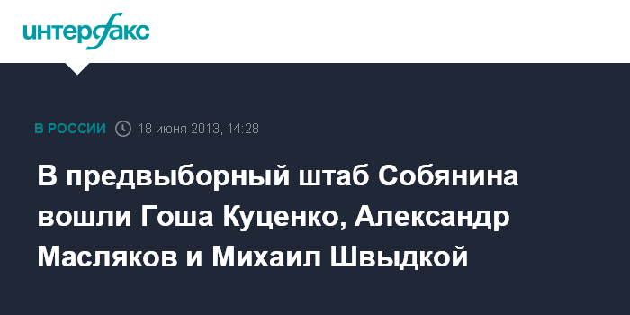 В предвыборный штаб Собянина вошли Гоша Куценко, Александр Масляков и Михаил Швыдкой