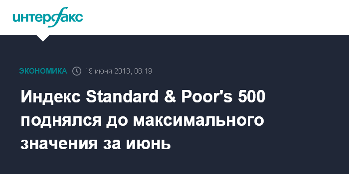 Индекс Standard & Poor's 500 поднялся до максимального значения за июнь