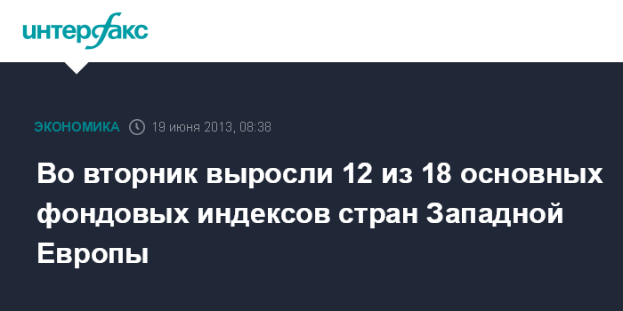Во вторник выросли 12 из 18 основных фондовых индексов стран Западной Европы