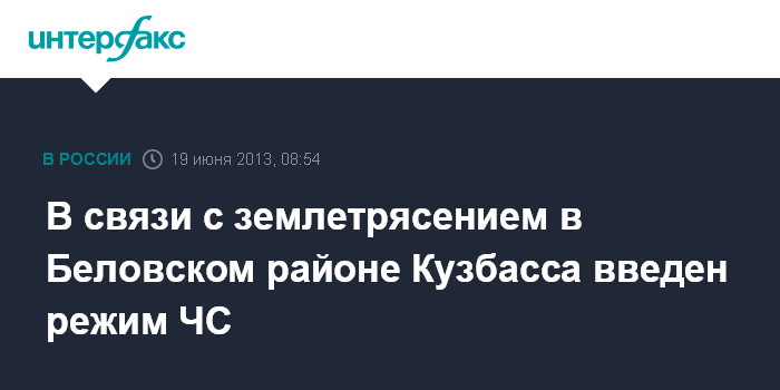 Кемерово. 19 июня. INTERFAX.RU - В эпицентре землетрясения в Кемеровской области - Беловском районе - введен режим ЧС, сообщила агентству "Интерфакс" в среду пресс-секретарь главы Беловского района Оксана Карнаухова.