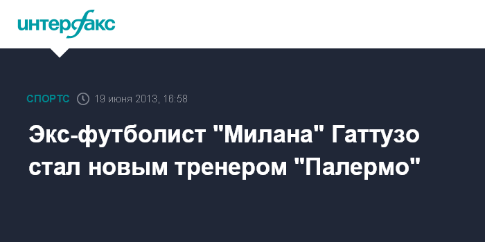 Москва. 19 июня. INTERFAX.RU - Бывший игрок "Милана" и сборной Италии по футболу Дженнаро Гаттузо официально возглавил "Палермо".