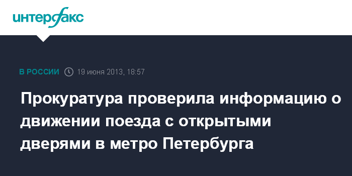 Санкт-Петербург. 19 июня. INTERFAX.RU - В Санкт-Петербурге прокуратура метрополитена провела проверку информации, размещенной в интернете, о неисправности дверей электропоезда, следовавшего по "красной" линии метро.