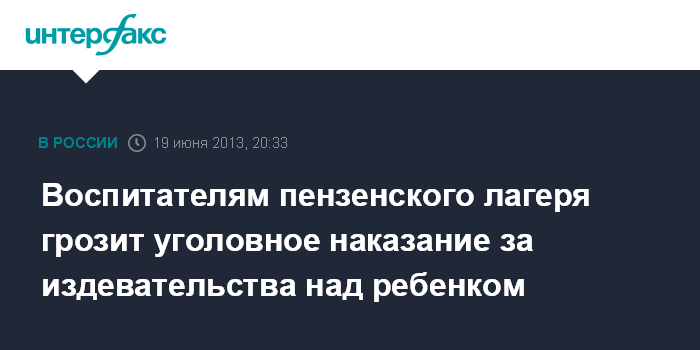 Воспитателям пензенского лагеря грозит уголовное наказание за издевательства над ребенком