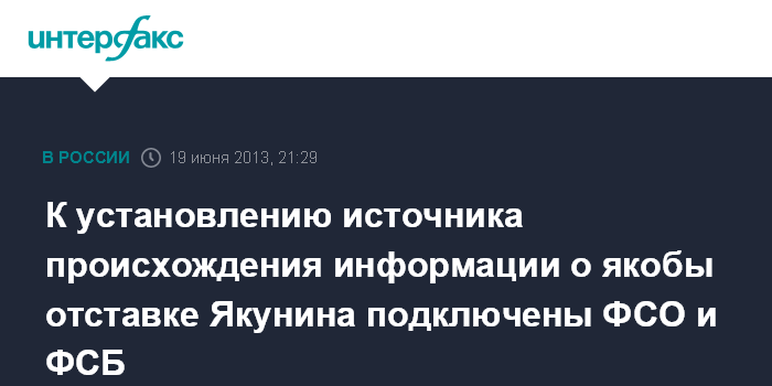 К установлению источника происхождения информации о якобы отставке Якунина подключены ФСО и ФСБ