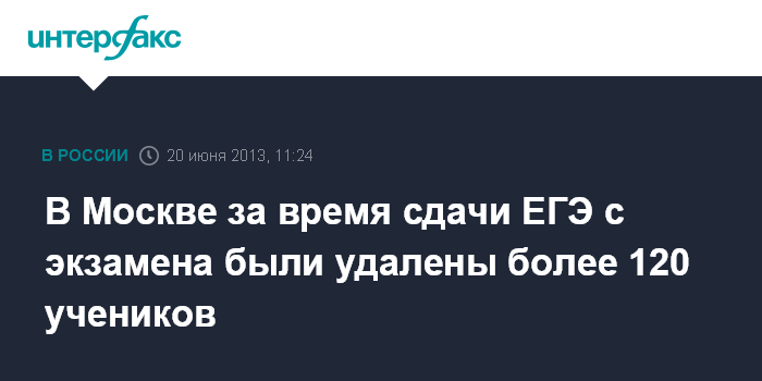 Москва. 20 июня. INTERFAX.RU- По итогам сдачи ЕГЭ в столице за различные нарушения были удалены из аудиторий 122 человека, сообщил начальник управления государственного надзора и контроля департамента образования Москвы Сергей Горбун в ходе "круглого стола" на тему "Резервы объективности и полезности ЕГЭ" в четверг.