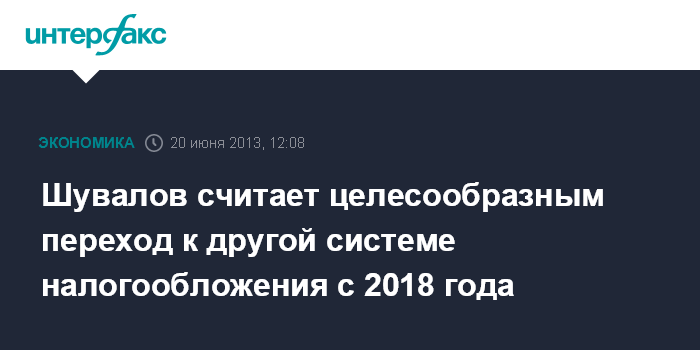 Шувалов считает целесообразным переход к другой системе налогообложения с 2018 года