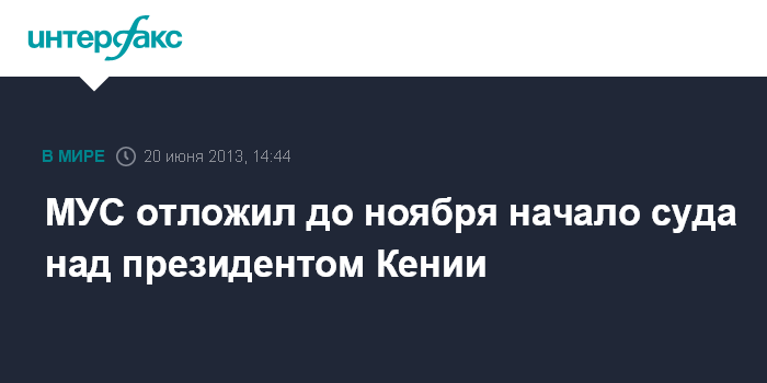 Гаага. 20 июня. ИНТЕРФАКС - В Международном уголовном суде (МУС) в четверг объявили о решении отложить начало слушаний по делу президента Кении Ухуру Кениатты до 12 ноября.
