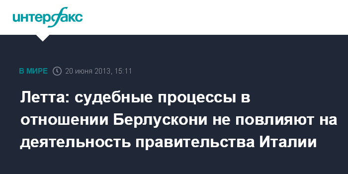 Летта: судебные процессы в отношении Берлускони не повлияют на деятельность правительства Италии