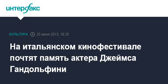 Лондон. 20 июня. INTERFAX.RU - Организаторы кинофестиваля в сицилийском городе Таормина на церемонии закрытия почтят память американского актера Джеймса Гандольфини, скончавшегося в ночь на четверг в возрасте 51 года, пишет британская газета The Guardian.