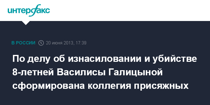 По делу об изнасиловании и убийстве 8-летней Василисы Галицыной сформирована коллегия присяжных