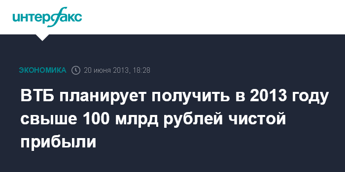 ВТБ планирует получить в 2013 году свыше 100 млрд рублей чистой прибыли