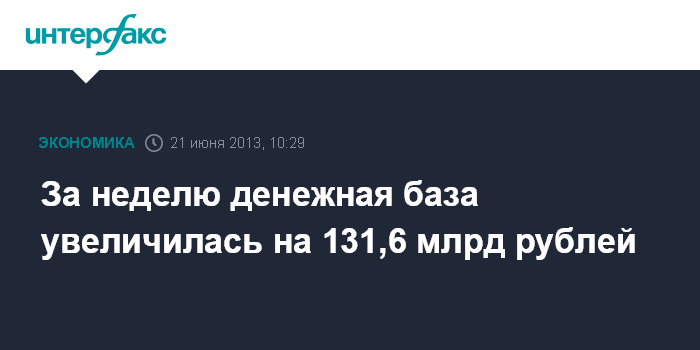 Таким образом, денежная база выросла на 131,6 млрд рублей.