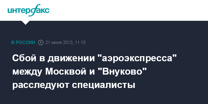 Сбой в движении "аэроэкспресса" между Москвой и "Внуково" расследуют специалисты