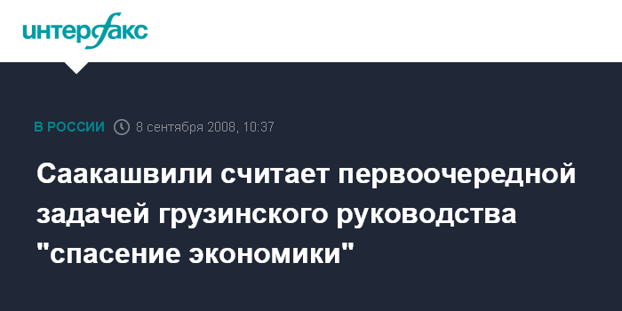 Тбилиси. 8 сентября. INTERFAX.RU - Президент Грузии Михаил Саакашвили не теряет надежд на мирное объединение Грузии при поддержке мирового сообщества, однако на данном этапе считает главной целью спасение и развитие экономики страны.