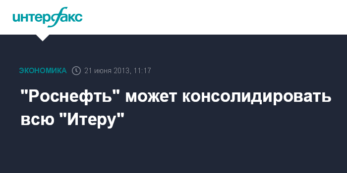 Санкт-Петербург. 21 июня. ИНТЕРФАКС-АГИ - "Роснефть" (может консолидировать всю "Итеру", заявил журналистам глава "Роснефти" Игорь Сечин.