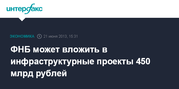 ФНБ может вложить в инфраструктурные проекты 450 млрд рублей
