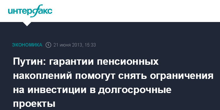 Путин: гарантии пенсионных накоплений помогут снять ограничения на инвестиции в долгосрочные проекты