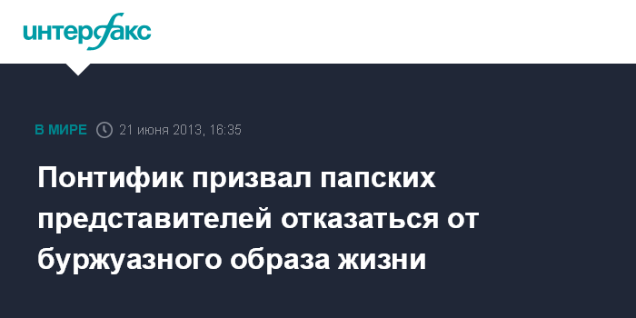 Рим. 21 июня. ИНТЕРФАКС - Папа римский Франциск призвал послов Ватикана оказаться от буржуазного образа жизни, чтобы избежать насмешек, сообщили в пятницу итальянские СМИ.
