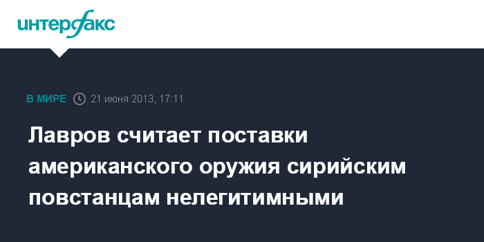 Лавров считает поставки американского оружия сирийским повстанцам нелегитимными