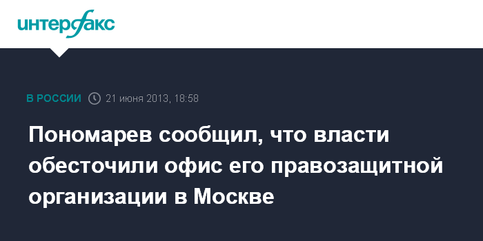 Пономарев сообщил, что власти обесточили офис его правозащитной организации в Москве