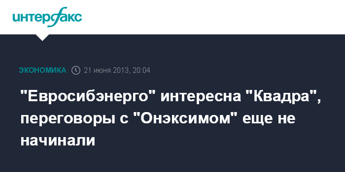 "Евросибэнерго" интересна "Квадра", переговоры с "Онэксимом" еще не начинали