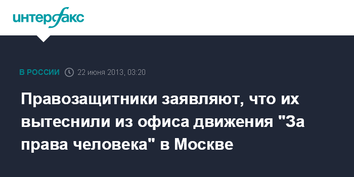 В пятницу стало известно, что власти Москвы потребовали от одной из старейших в РФ правозащитных организаций - движения "За права человека" - освободить офис в Малом Кисловском переулке, дом 7. При этом власти ссылались на то, что срок договора аренды истек еще в феврале.