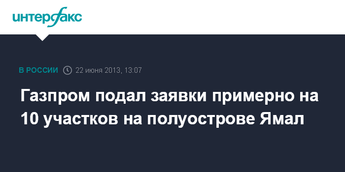 Санкт-Петербург. 22 июня. INTERFAX.RU - "Газпром" (РТС: GAZP) подал заявки на геологическое изучение примерно на 10 участков на полуострове Ямал, относящихся к категории участков федерального значения, сообщил журналистам глава Минприроды Сергей Донской. "На самом деле уже подал", - сказал он. "По нескольким участкам есть нефтегазовые оторочки. По этим участкам будем проводить аукционы. Там где чисто газ, те будут переданы "Газпрому", - сказал министр