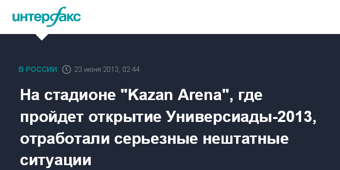 На стадионе "Kazan Arena", где пройдет открытие Универсиады-2013, отработали серьезные нештатные ситуации