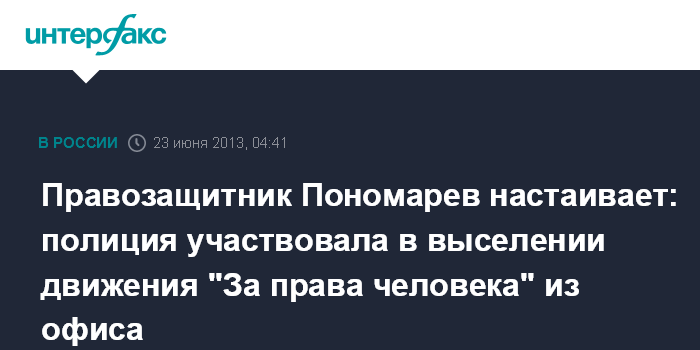 Правозащитник Пономарев настаивает: полиция участвовала в выселении движения "За права человека" из офиса