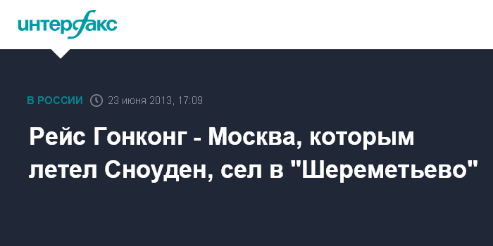 Москва. 23 июня. INTERFAX.RU - Самолет авиакомпании "Аэрофлот" Гонконг - Москва, на борту которого находится бывший сотрудник ЦРУ Эдвард Сноуден, прибыл в столичный аэропорт "Шереметьево", передает корреспондент "Интерфакса". Как отмечается на табло аэропорта, рейс SU213 приземлился в терминале F аэропорта "Шереметьево" в 17:05 мск.