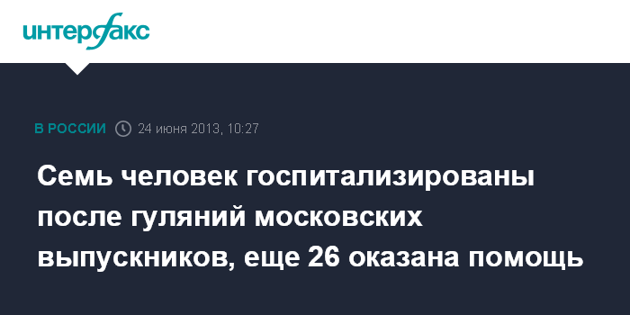 Семь человек госпитализированы после гуляний московских выпускников, еще 26 оказана помощь