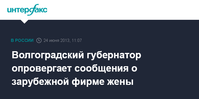 Волгоградский губернатор опровергает сообщения о зарубежной фирме жены