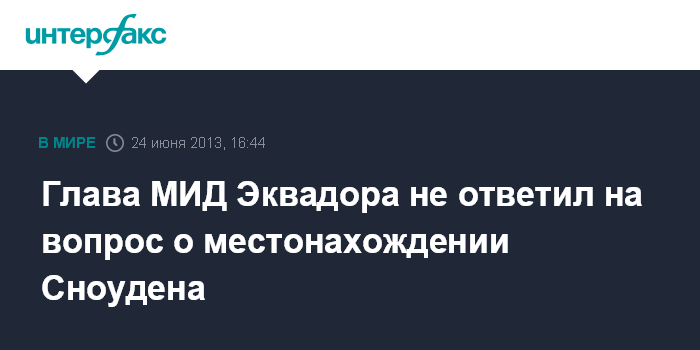 Ханой. 24 июня. INTERFAX.RU - Министр иностранных дел Эквадора Риккардо Патиньо заявил, что не располагает информацией о том, где сейчас находится бывший сотрудник ЦРУ Эдвард Сноуден.