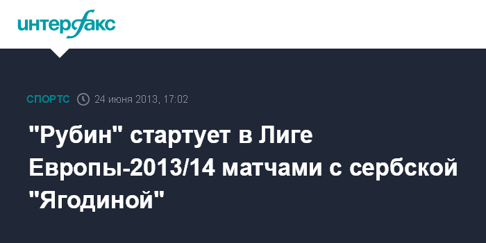 Москва. 24 июня. INTERFAX.RU - По итогам жеребьевки второго квалификационного раунда Лиги Европы сезона-2013/14 в швейцарском Ньоне соперником казанского "Рубина" стал сербский клуб "Ягодина".