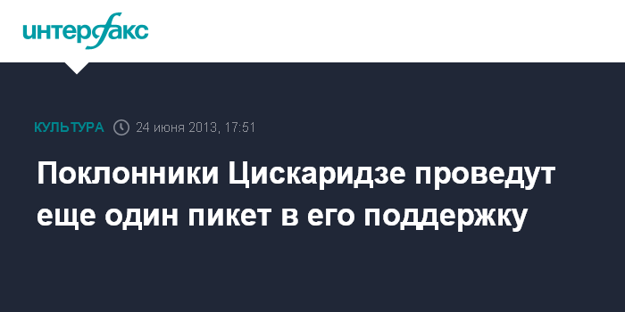 Москва. 24 июня. INTERFAX.RU - Поклонники танцора Большого театра Николая Цискаридзе, уволенного ранее, 29 июня планируют провести второй пикет в его поддержку. "Будем подавать заявку на проведение пикета 29 июня напротив Большого театра", - сообщила в понедельник "Интерфаксу" инициатор группы в поддержку Цискаридзе Ольга Марцинкевич