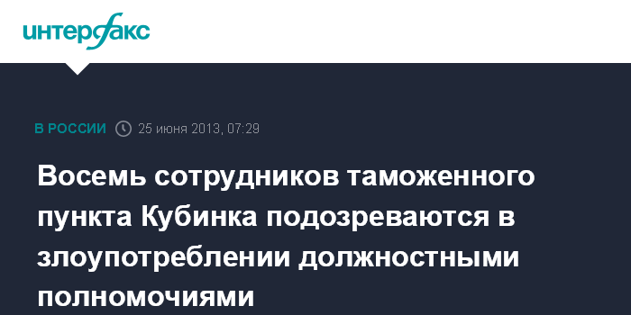 Восемь сотрудников таможенного пункта Кубинка подозреваются в злоупотреблении должностными полномочиями