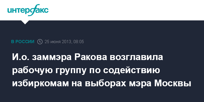 "Образована межведомственная рабочая группа по оказанию содействия избирательным комиссиям, которую возглавила и.о. заместителя мэра Анастасия Ракова. Ее заместителем назначен и.о. руководителя департамента территориальных органов исполнительной власти Вячеслав Шуленин", - рассказал собеседник агентства.