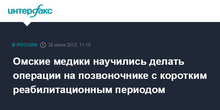 Омские медики научились делать операции на позвоночнике с коротким реабилитационным периодом