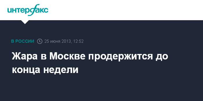 Москва. 25 июня. INTERFAX.RU - Жаркая погода сохранится в Москве до воскресенья, сообщает Гидрометцентр России.