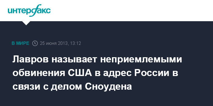 Лавров называет неприемлемыми обвинения США в адрес России в связи с делом Сноудена