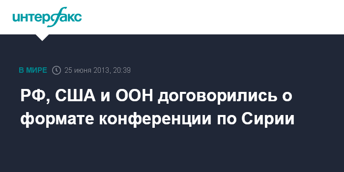 Женева. 25 июня. INTERFAX.RU - Сроки проведения новой международной конференции по Сирии (Женева-2) определить на трехсторонней встрече в формате РФ-США-ООН не удалось.