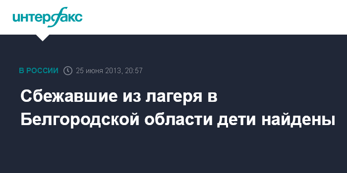 Москва. 25 июня. INTERFAX.RU - В Белгородской области обнаружено местонахождение сбежавших из лагеря детей, сообщает пресс-служба СК РФ.