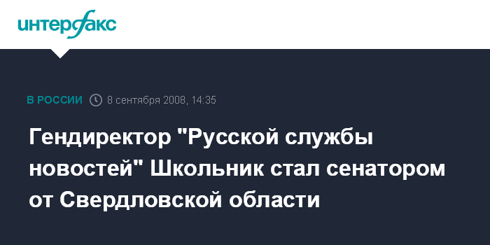 Гендиректор "Русской службы новостей" Школьник стал сенатором от Свердловской области
