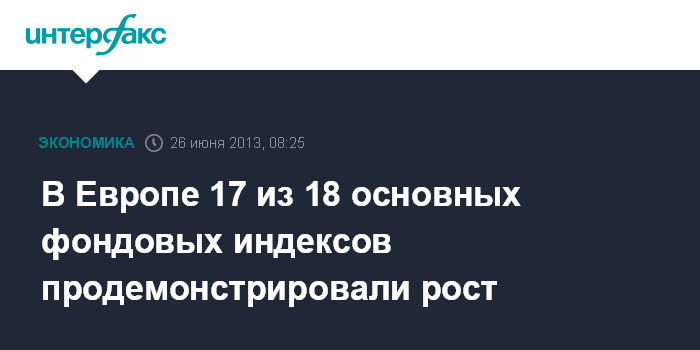 В Европе 17 из 18 основных фондовых индексов продемонстрировали рост