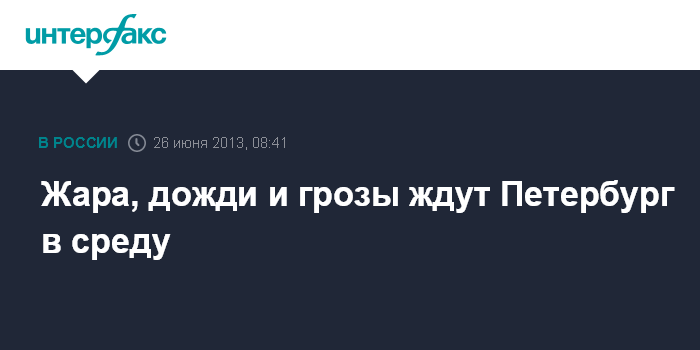 Санкт-Петербург. 26 июня. INTERFAX.RU - Жаркая погода с осадками сохранится в Петербурге в среду.