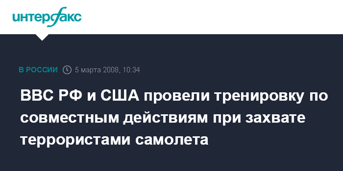 ВВС РФ и США провели тренировку по совместным действиям при захвате террористами самолета