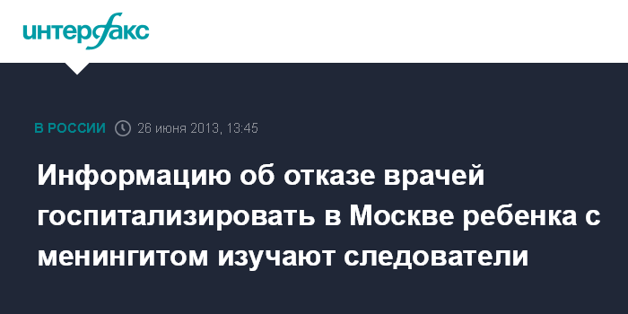 Информацию об отказе врачей госпитализировать в Москве ребенка с менингитом изучают следователи