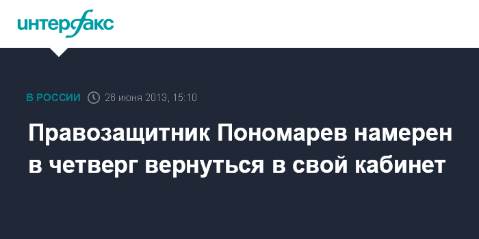 Правозащитник Пономарев намерен в четверг вернуться в свой кабинет