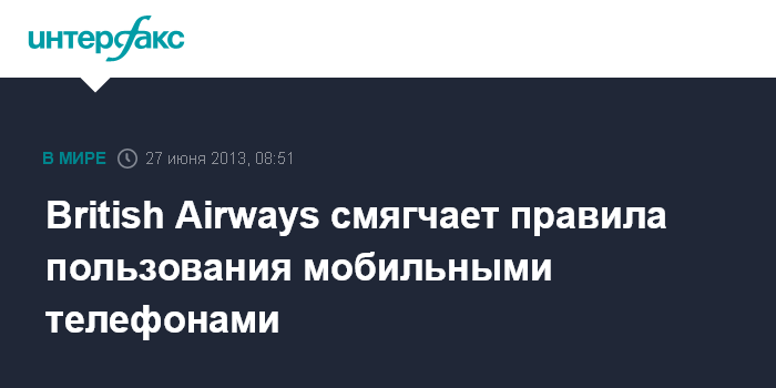 Лондон. 27 июня. INTERFAX.RU - British Airways станет первой европейской авиакомпанией, которая разрешит пассажирам включать мобильные телефоны и другие электронные устройства сразу после приземления, сообщает BBC.