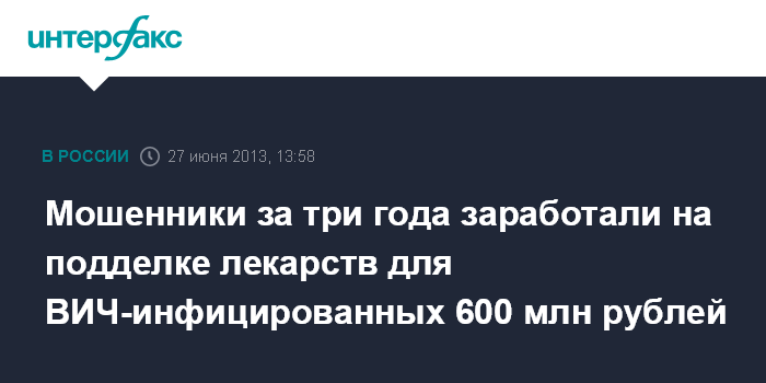 Мошенники за три года заработали на подделке лекарств для ВИЧ-инфицированных 600 млн рублей